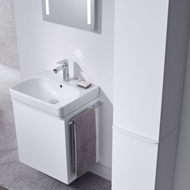 aus Waschbecken und Unterschrank zu einer smarten Wahl für kleine Badezimmer und Gästetoiletten.
